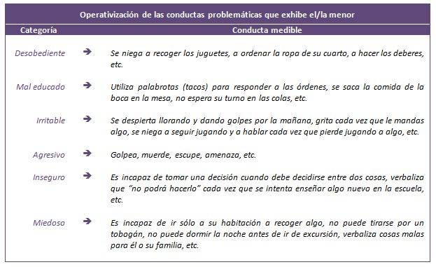 • Para empezar a recoger información hay que tener claro qué vamos a medir. Ejemplos claros de algo que le va a costar mucho medir y que, sin embargo, usted mismo habrá dicho u oído en infinidad de ocasiones son estas afirmaciones: “este niño es muy desobediente, muy mal educado, muy irritable, muy agresivo, muy inseguro, muy miedoso, etc.”. Se trata de afirmaciones coloquiales, pero muy vagas y difusas.