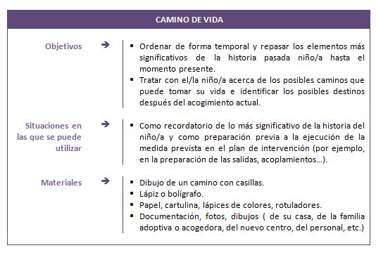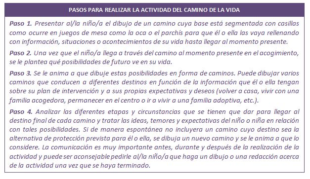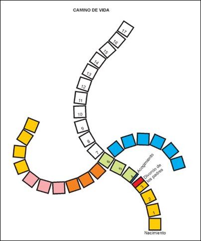 Es una técnica basada en la representación gráfica en la que se plantean los posibles trayectos que puede seguir la vida del niño o la niña con posterioridad al acogimiento actual y en función de su plan de intervención.