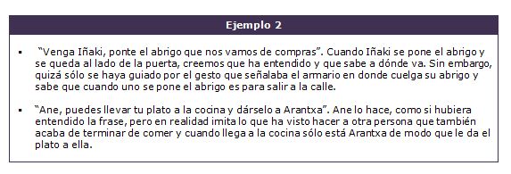 - En otros casos, puede ocurrir que creamos que la persona con discapacidad ha entendido porque ha respondido de forma apropiada y porque el mensaje es lo suficientemente complejo como para no considerar posible que lo ha descifrado a partir de un simple movimiento, de un gesto o de algún otro indicio contextual.