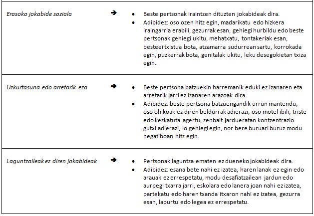 Elkarrizketek, parte hartzen duten pertsonen arabera, bereziki problematikotzat jotzen diren jokabide eta egoera guztiak aintzat hartu behar dituzte.