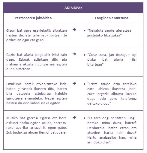 Horrelako egoeretan, pertsonak nerbioak ageri dituenean edo jokabidea gorantz doala erakusten duten aztarnak igartzen direnean, helburua pertsonak adierazi ezin duen arazoa zein den ulertzera iristea da.
